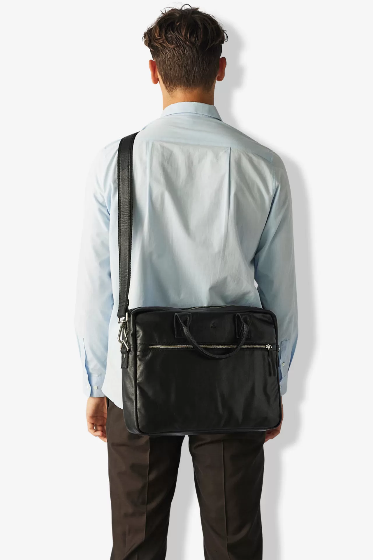Tobias in Prato leather from Adax is a functional computer bag. Inside there is a large compartment with a lined pocket with room for a laptop. Small pockets with space for pens etc. as well as a small, zipped pocket for the small things you need to find quickly. There is also an external zipped pocket on the front and a strap on the back for attaching the folder to a trolley. The briefcase has 2 carrying handles and a removable, adjustable leather shoulder strap. Prato is made of strong buffalo leather.